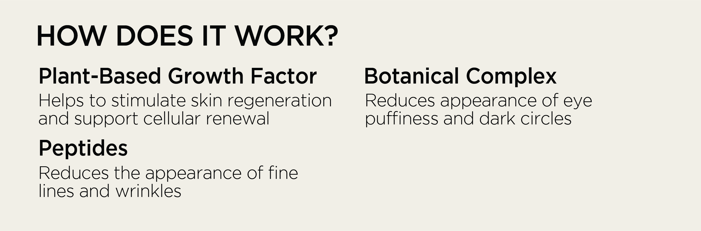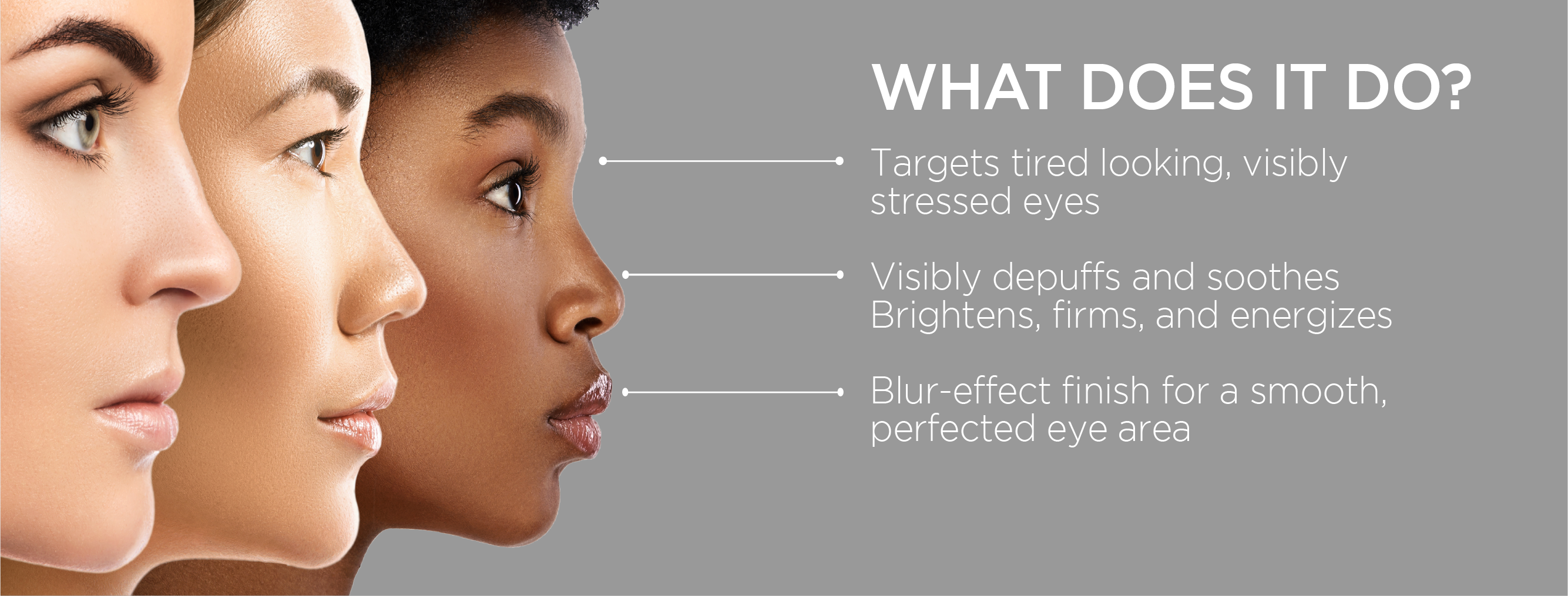 - Targets tired looking, visibly stressed eyes